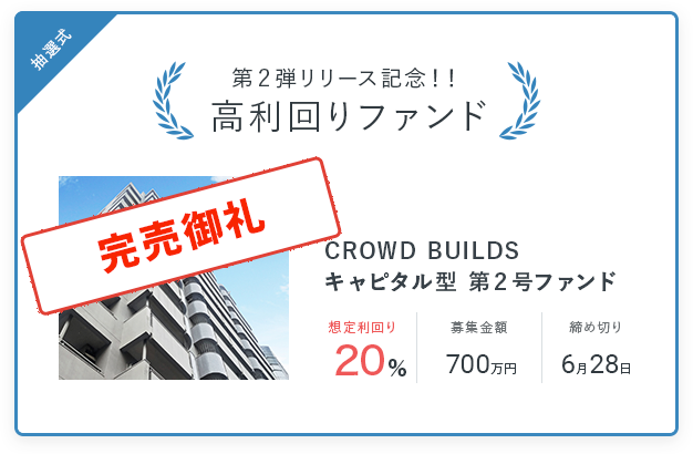 株式会社フィンスターが運営する不動産クラウドファンディングサービス「CROWD BUILDS」キャピタル型第2号ファンドが完売致しました。