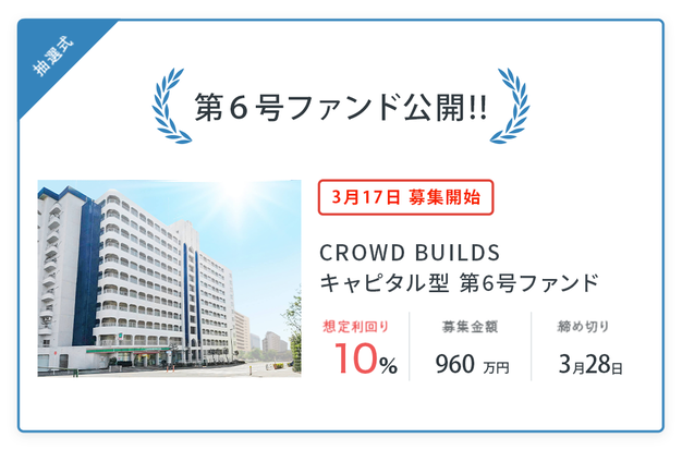 NEWS「CROWD BUILDS」キャピタル重視型第6号(利回り10%)の応募開始